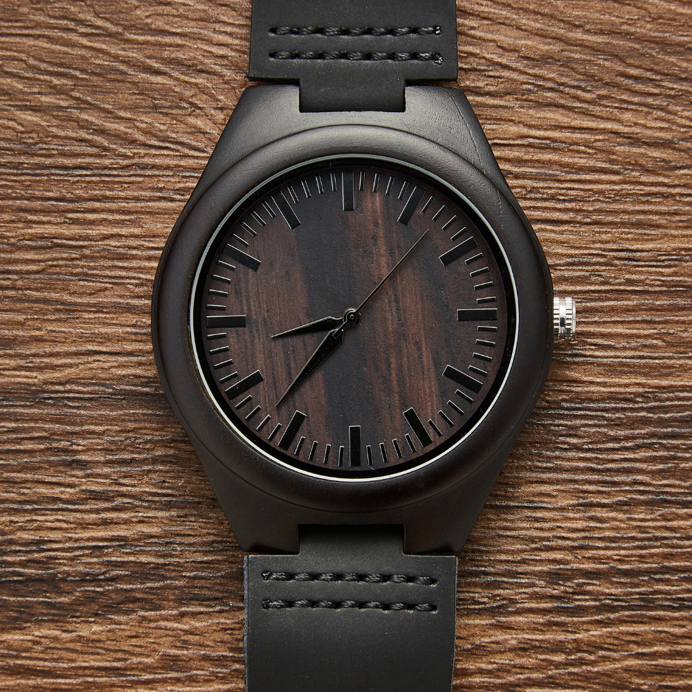 A: The Engraved Wooden Watch is made of high quality wood and highly-durable leather.