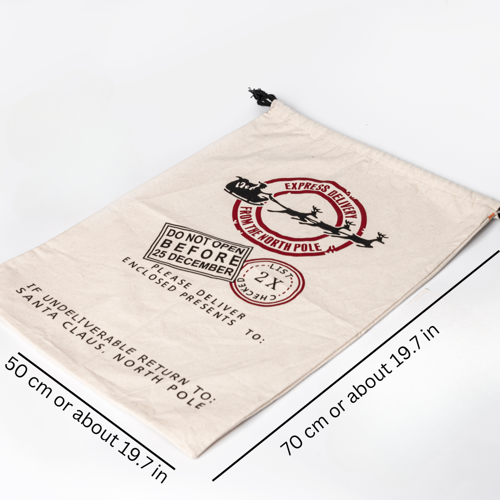 Make Christmas even more magical with our North Pole Express Santa Sack, a festive touch that brings joy to gift-giving. This charming sack, allows you to personalize the experience by writing the name of your loved one on the bag. Create cherished memories as you watch their eyes light up with excitement upon receiving a uniquely marked gift.